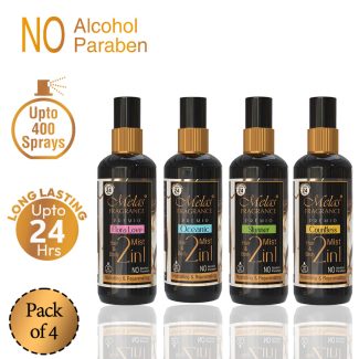 Melas Fragrance 2 in 1 Set of 4 Perfume Body & hair mist I Long Lasting, Warm, Sweet & International Fine FragrancesI Gift Set A