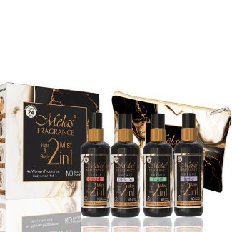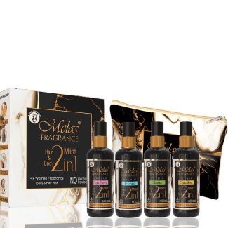 Melas Fragrance 2 in 1 Set of 4 Perfume Body & hair mist I Long Lasting, Warm, Sweet & International Fine FragrancesI Gift Set B